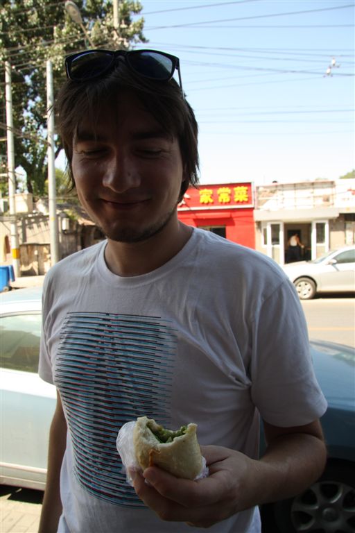 Nach dem Besuch des Himmelstempels kauften wir uns auf einem kleinen Markt den wir auf der Hinfahrt entdeckt haben etwas zum Mittagessen. Haben uns 5 Blätterteigtaschen gekauft, besser gesagt eher Wundertüten, da die nette Verkäuferin keine Englisch konnte und wir nicht mal wussten ob es süß oder salzig ist. Das Ergebnis: Sie waren süß und man wurde statt, mein Lieblingsgericht wird’s aber nicht. Gut gestärkt radelten wir weiter zu dem kleinsten Hutong (Xiaolaba) Pekings. Dieser ist an der schmalsten Stelle gerademal 58 cm breit. Im Anschluss fuhren wir kreuz und quer durch weitere schöne Hutongs.
